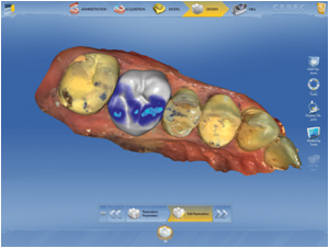 스캔한 치아를 확인하고 CEREC AC에서 수복할 부분을 디자인 합니다.